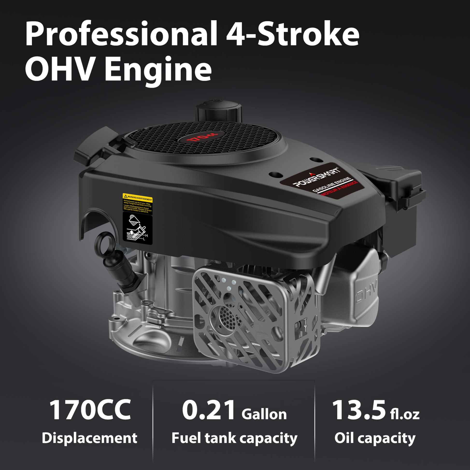 - Powerful 170cc Engine – reliable performance with 60L grass bag