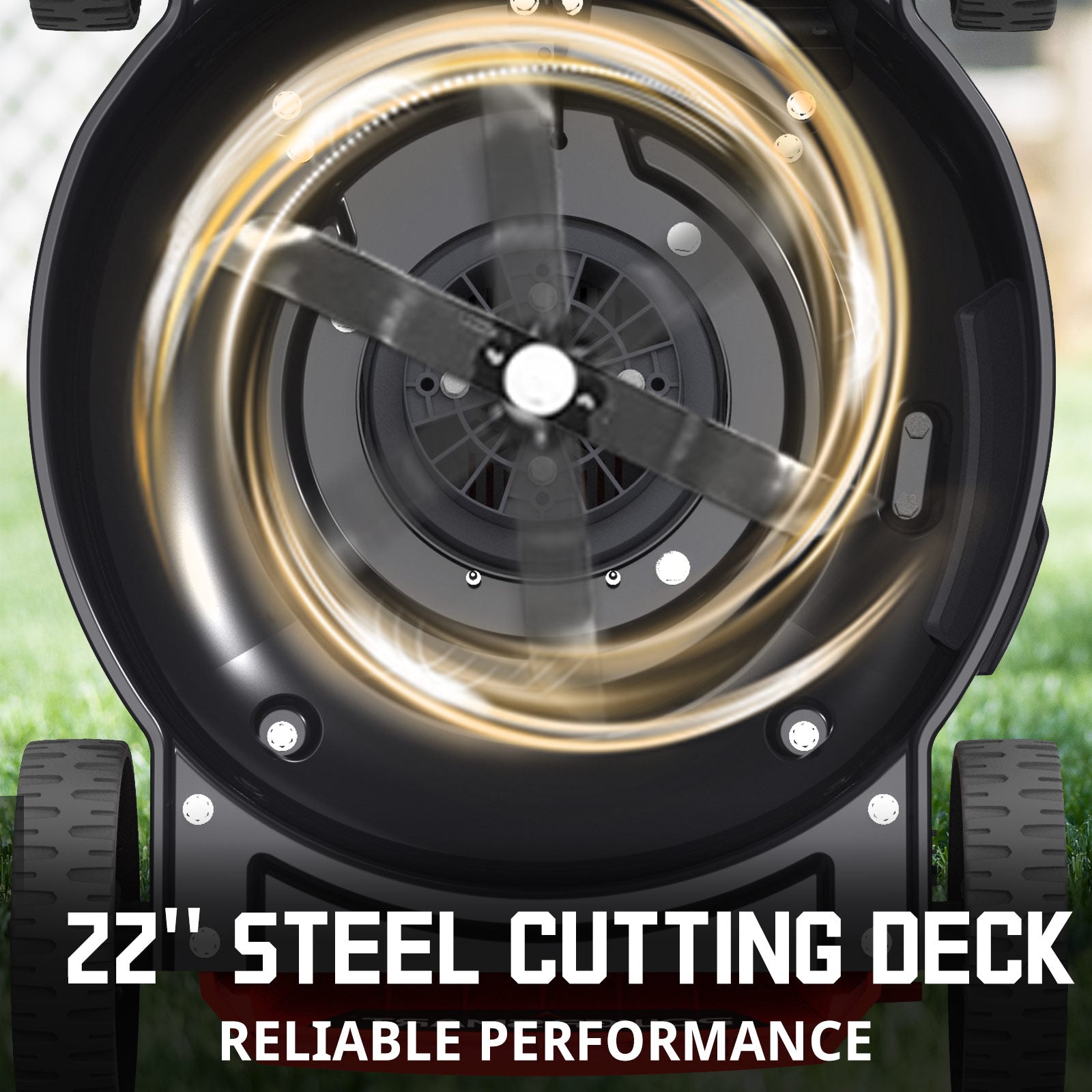 - Wide 22" Cutting Deck: Covers more lawn with each pass for faster mowing.