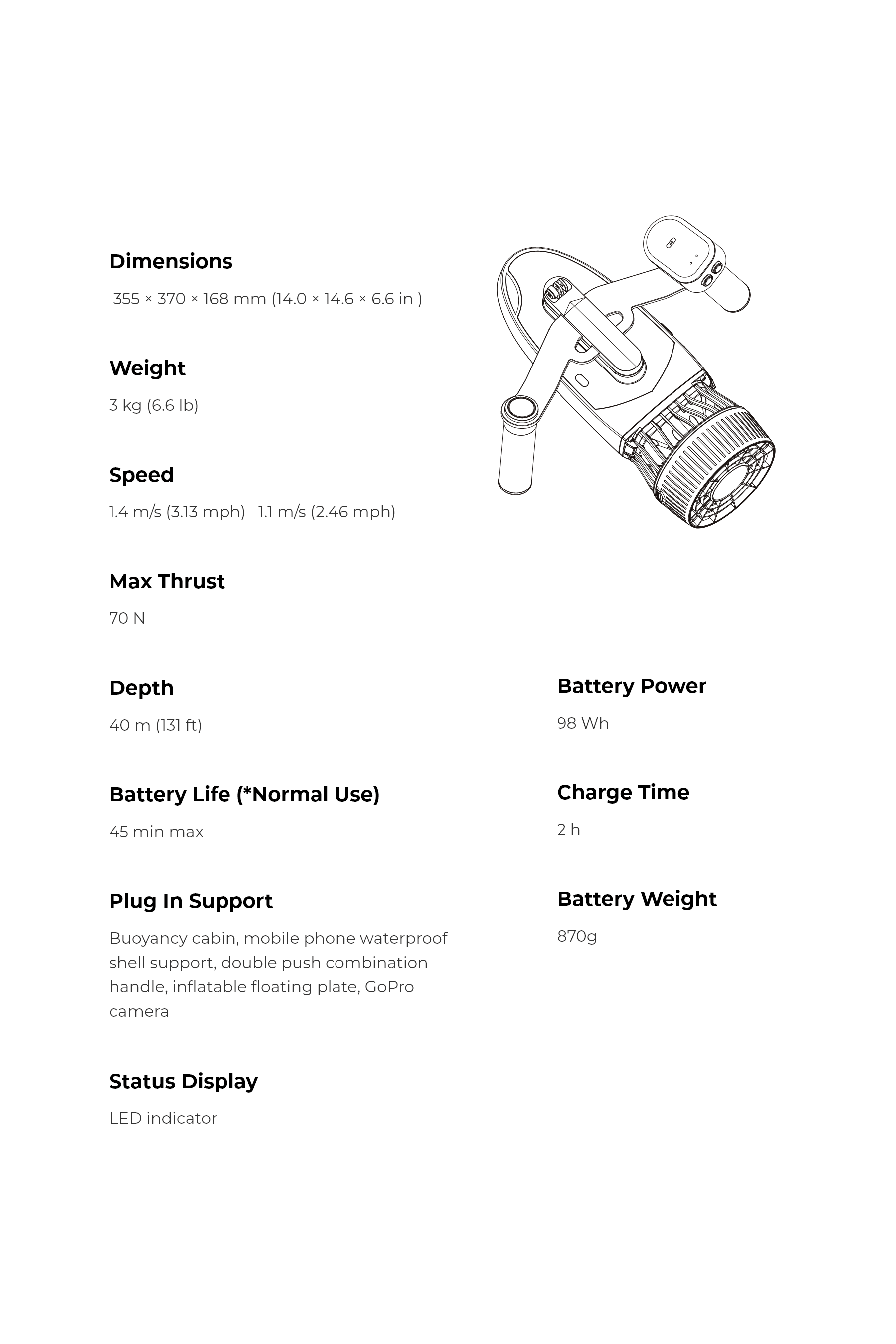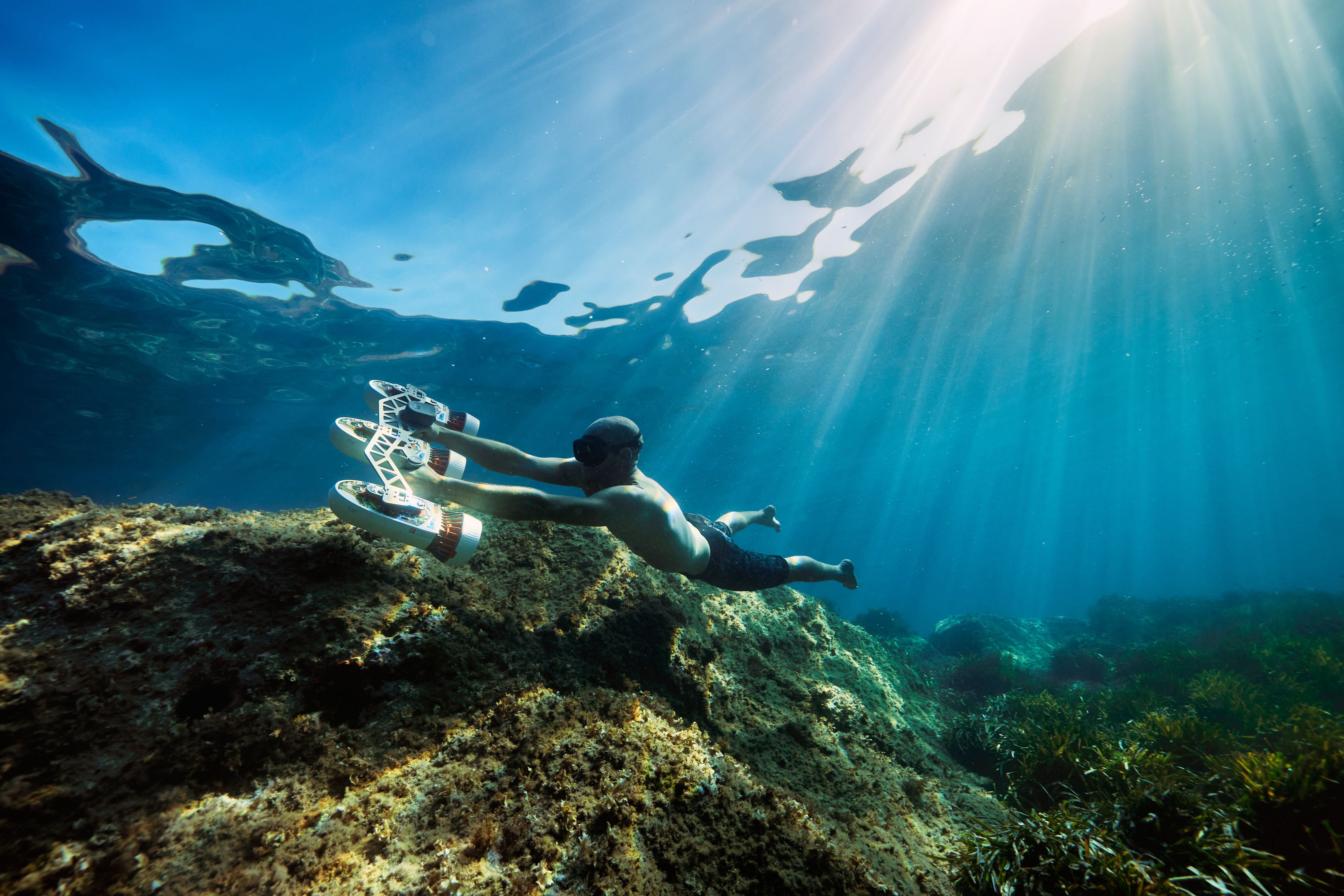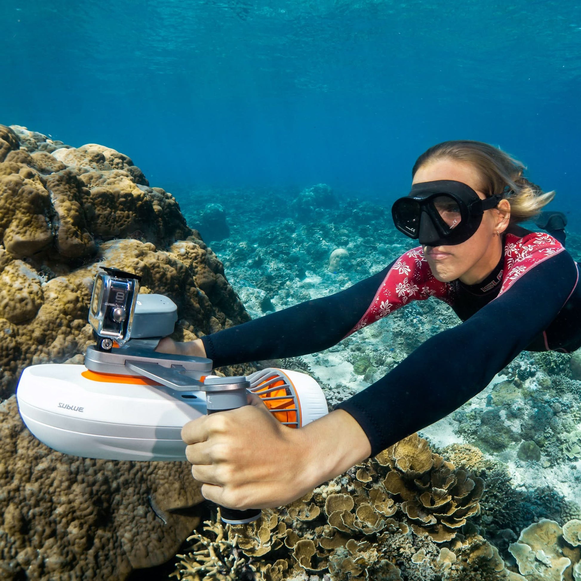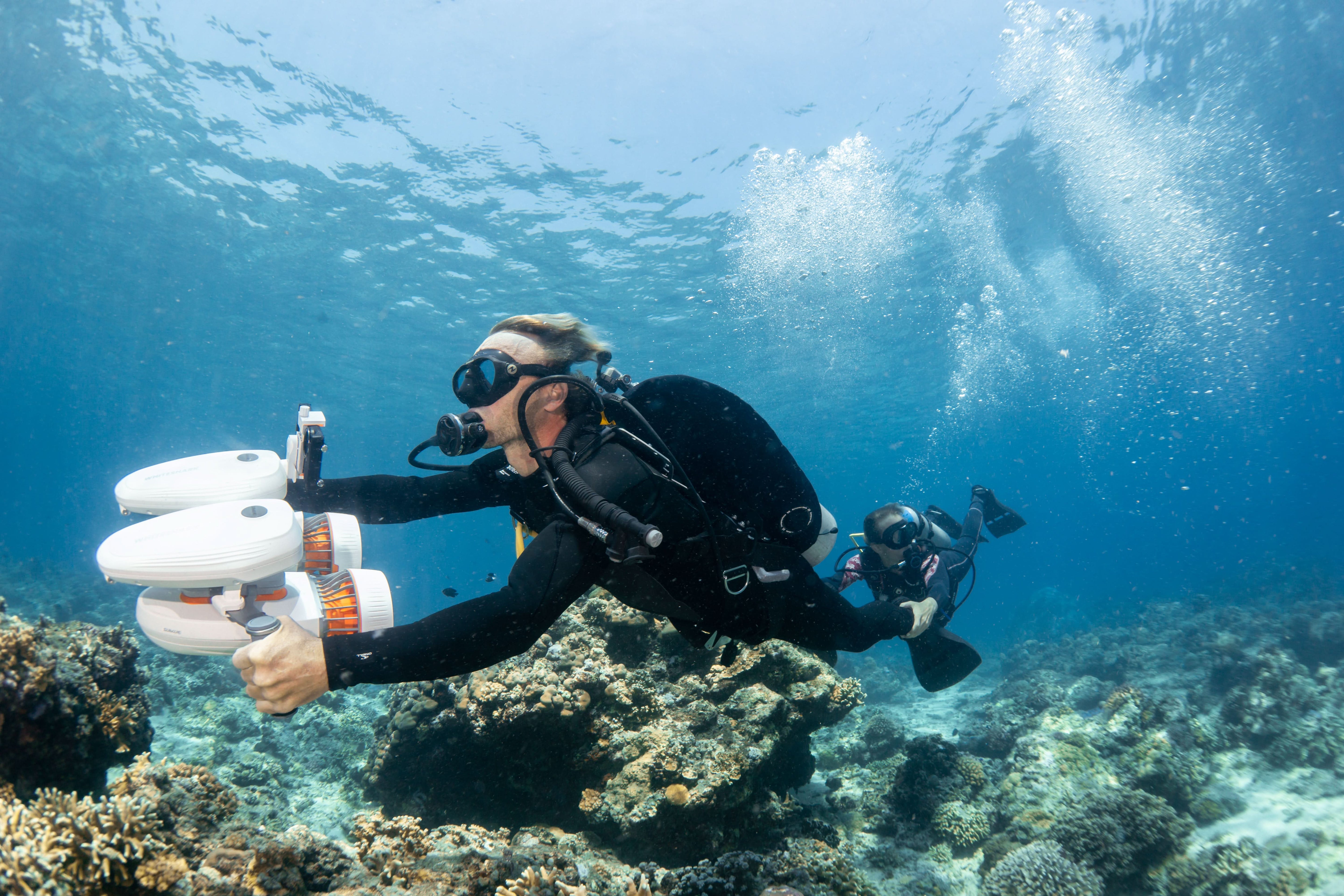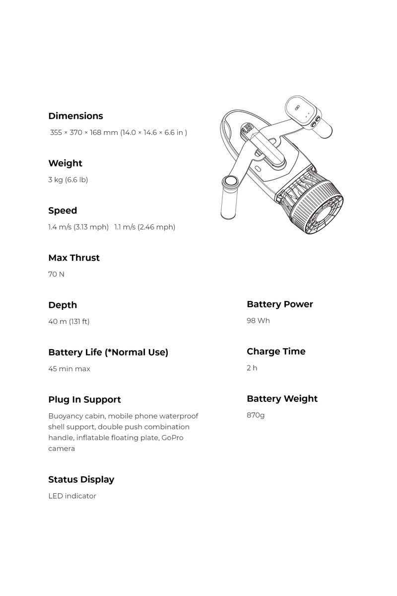 Modular scooter, freely assemblable. Enjoy double or triple thrust, and pair it with various accessories such as floating boards, paddle board power sets, etc. to have fun in the underwater world!