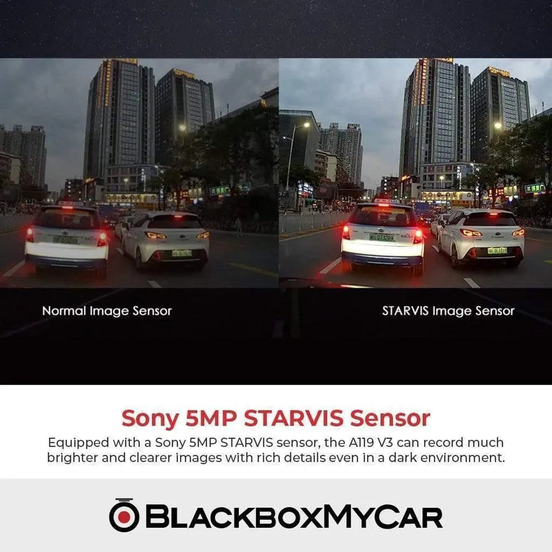 The Best Budget-Friendly 1-Channel 2K QHD. With the new Sony Starvis 5MP technology and advanced Parking Mode features, the A119 V3 is the top model in the A119 Series, offering brighter, clearer and more detailed images captured in day or nighttime lighting for super clear night vision.