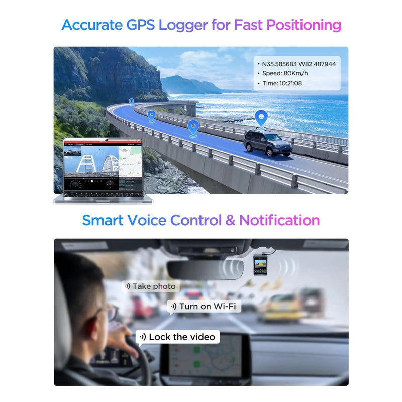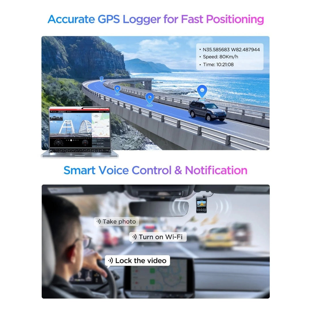 The system also features advanced Voice Control, allowing you to operate the dash cam hands-free. Simple commands ensure you can save critical moments without taking your eyes off the road.