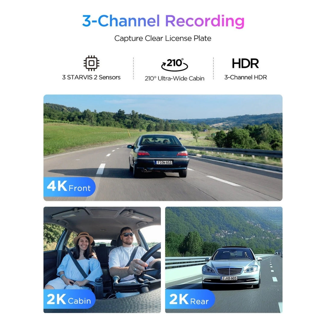 No. The 4K 60FPS mode is available when using the front camera in single-channel mode. When all three dash cameras are active, the system records in 4K 30FPS + 2K + 2K to ensure stability using the Starvis 2 technology.